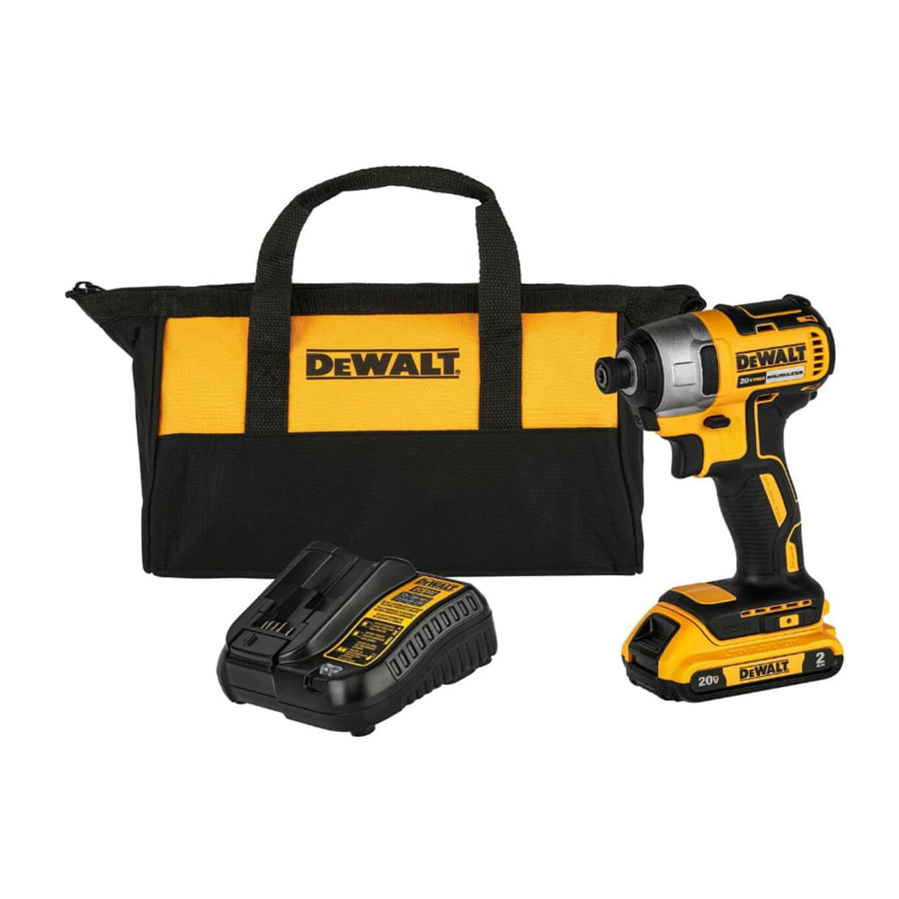 Incluye: (1) Atornillador de Impacto de 20V MAX* DCF7871 (1) Batería de Ion de Litio de 20V MAX DCB203 (2.0Ah) (1) Cargador DCB107 (1) Bolso