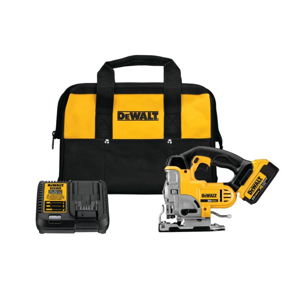 Batería 20V MAX XR 4Ah, un cargador y una bolsa de almacenamiento duradera para transportarla en el lugar de trabajo.