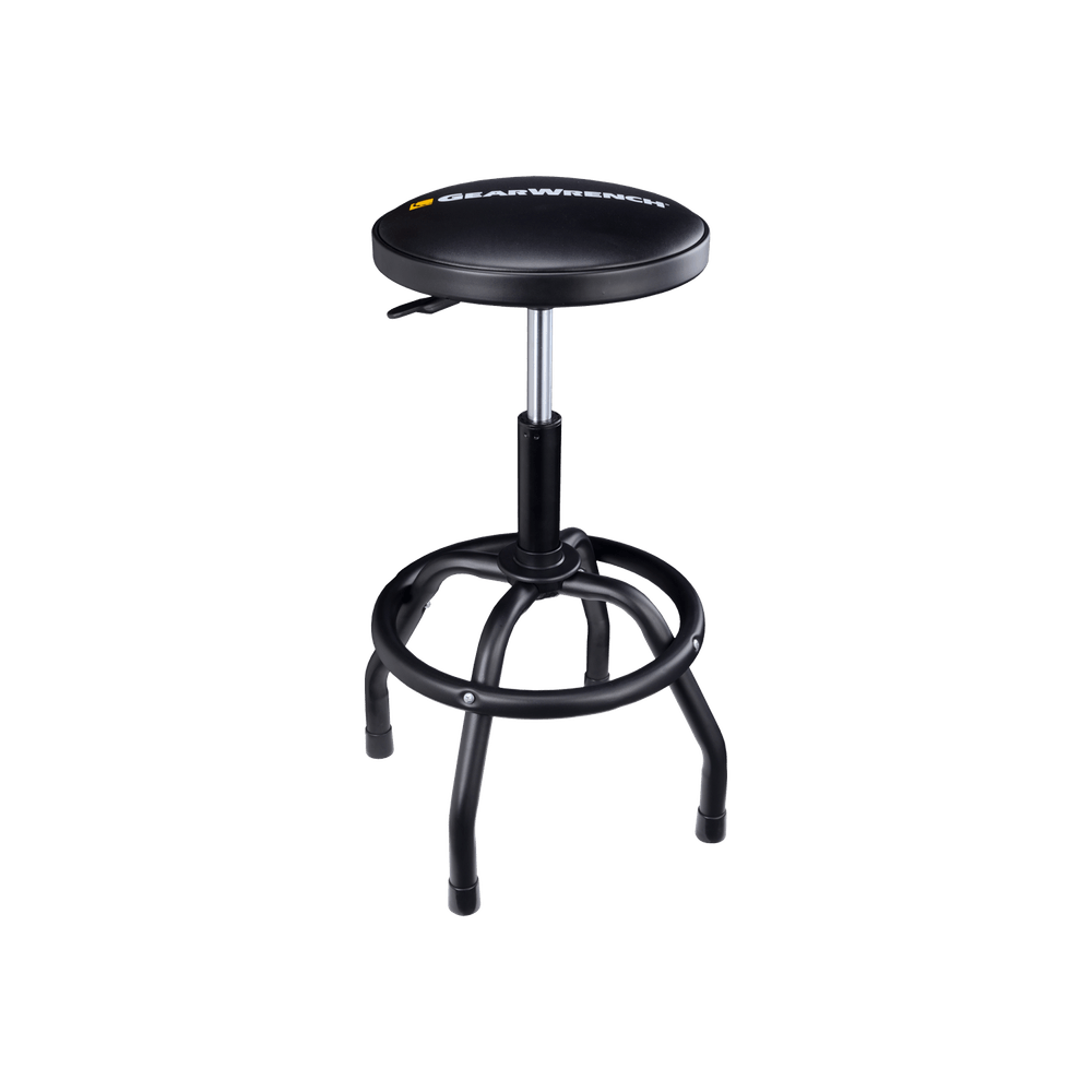 Marco metálico recubierto de pintura electrostática para una mayor durabilidad El asiento gira 360° para mayor movilidad Asiento acolchado resistene a solventes Asiento ajustable con amortiguador de aire para adaptarse a sus necesidades La palanca para ajustar la altura mueve fácilmente el asiento de arriba abajo Capacidad de 300 libras