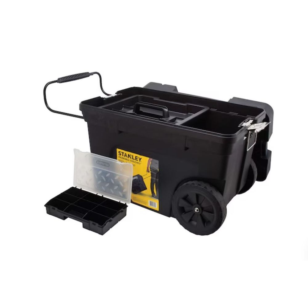 Características: Organizador removible para mantener todas las piezas organizadas. Bandeja interior que cubre 2/3 del ancho. Permite acceso para herramientas eléctricas sin tener que quitarla. Ruedas recubiertas de goma extra grandes facilitan el transporte. Parte superior con canal en V, para serruchar. Volumen útil equivalente a 53 litros (12 galones)