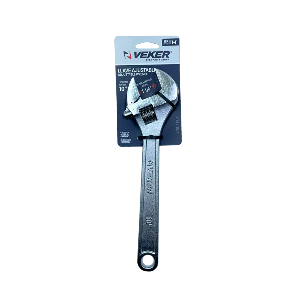 Diseñada para ajustar tuercas y tornillos de diferentes medidas en trabajos de mecánica, plomería, carpintería y mantenimiento general.