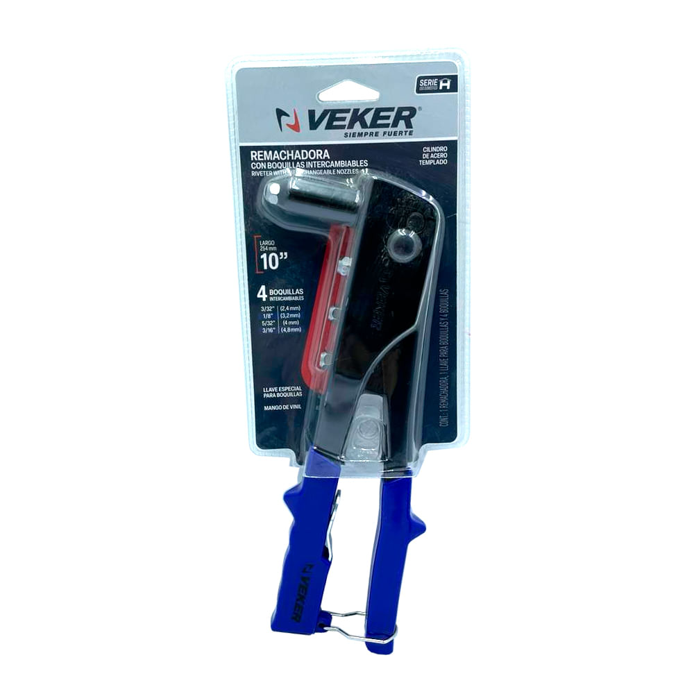 Incluye 4 boquillas de cambio rápido para distintos diámetros de remaches.